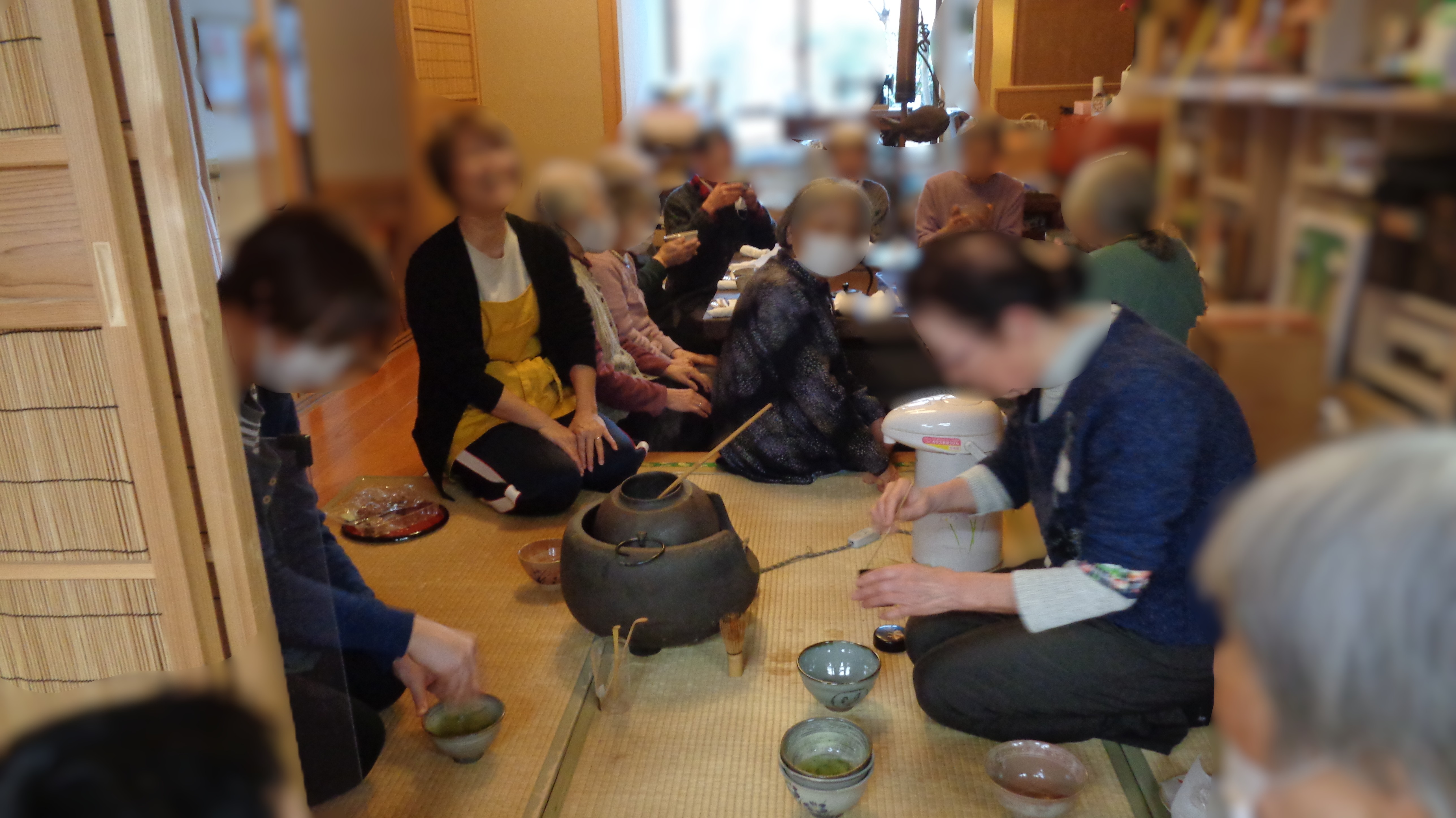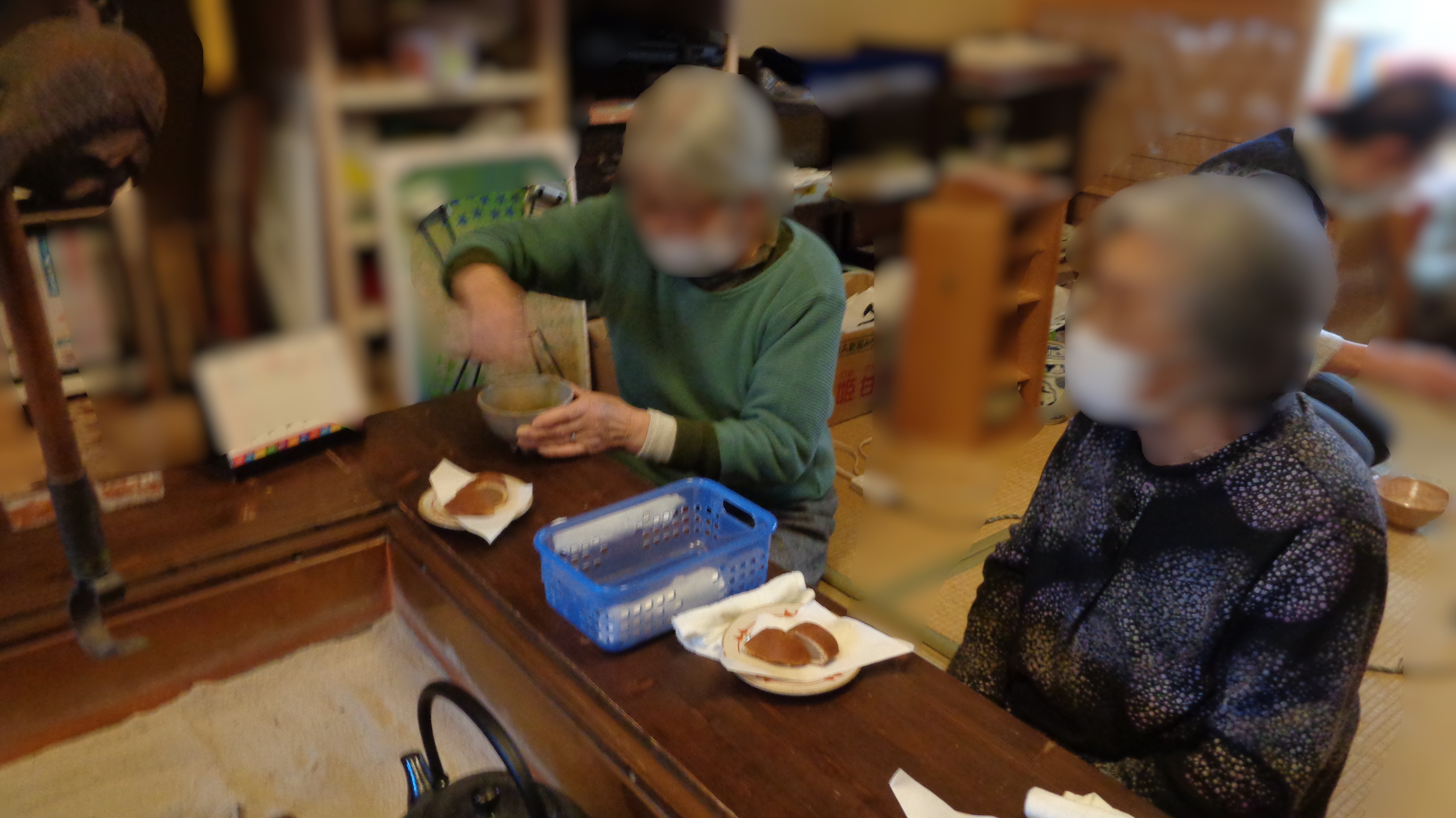 職員さん及び一部の利用者様が点てた一杯とお茶菓子を皆さんでいただいてホッと一息。