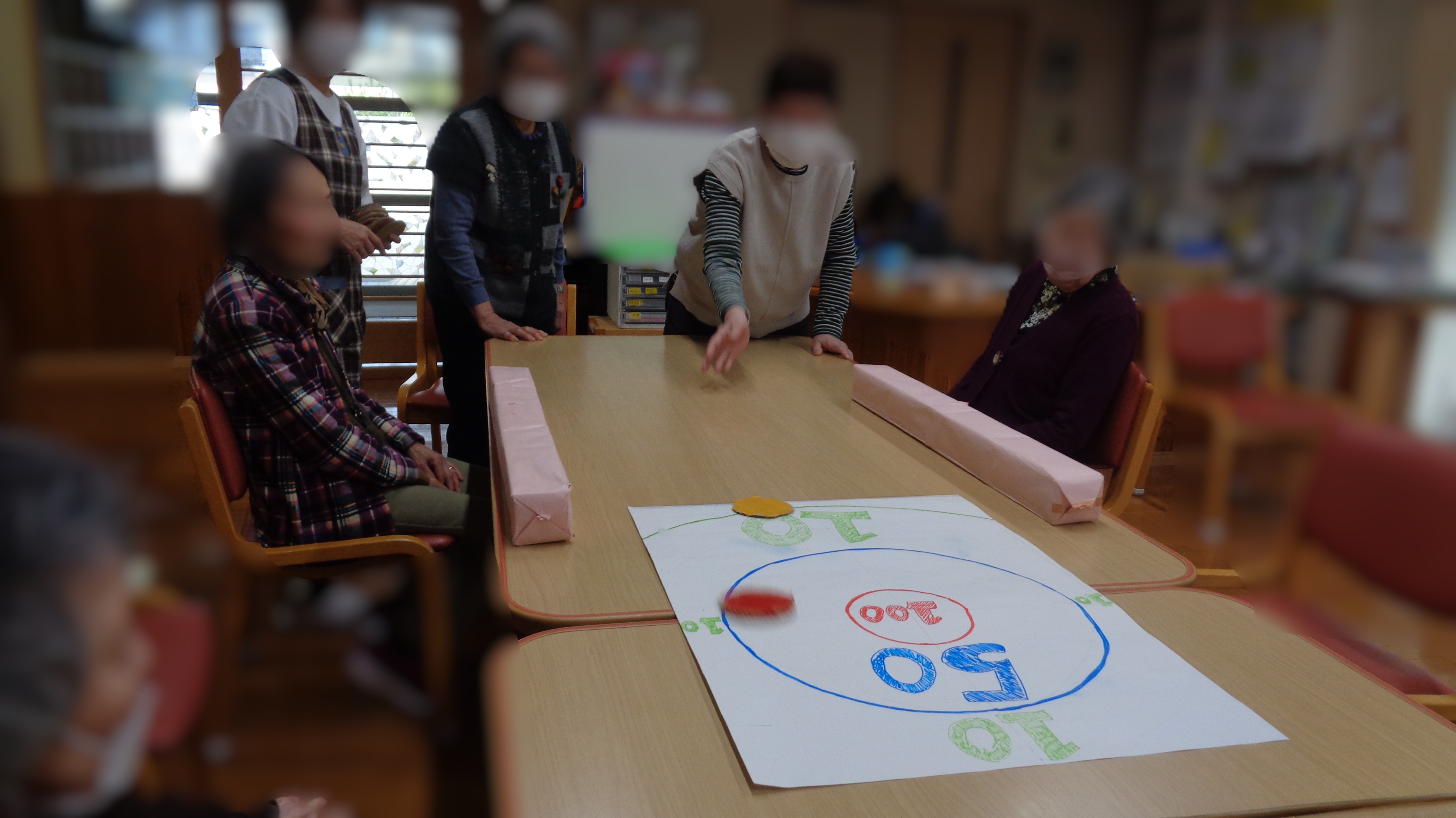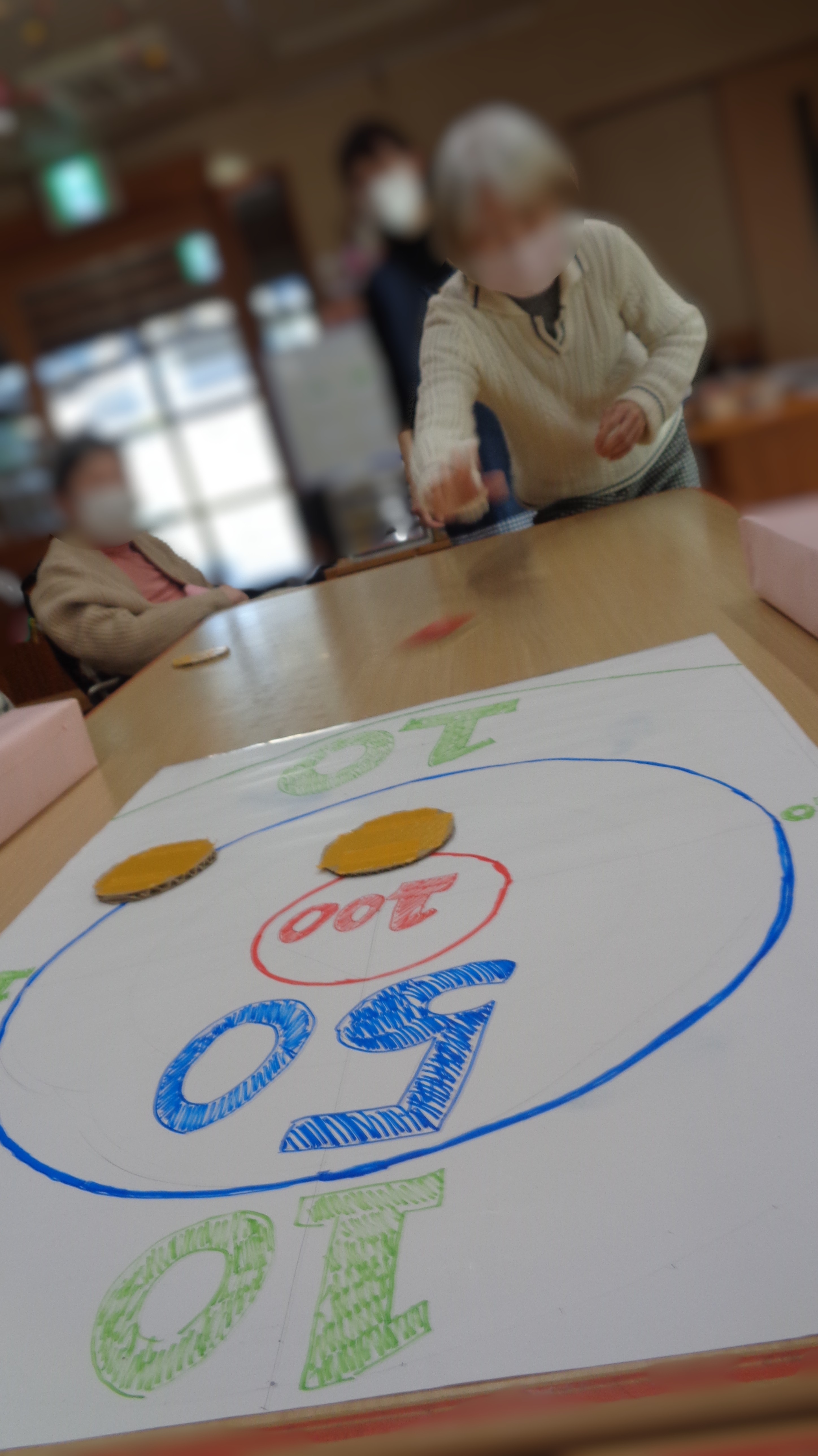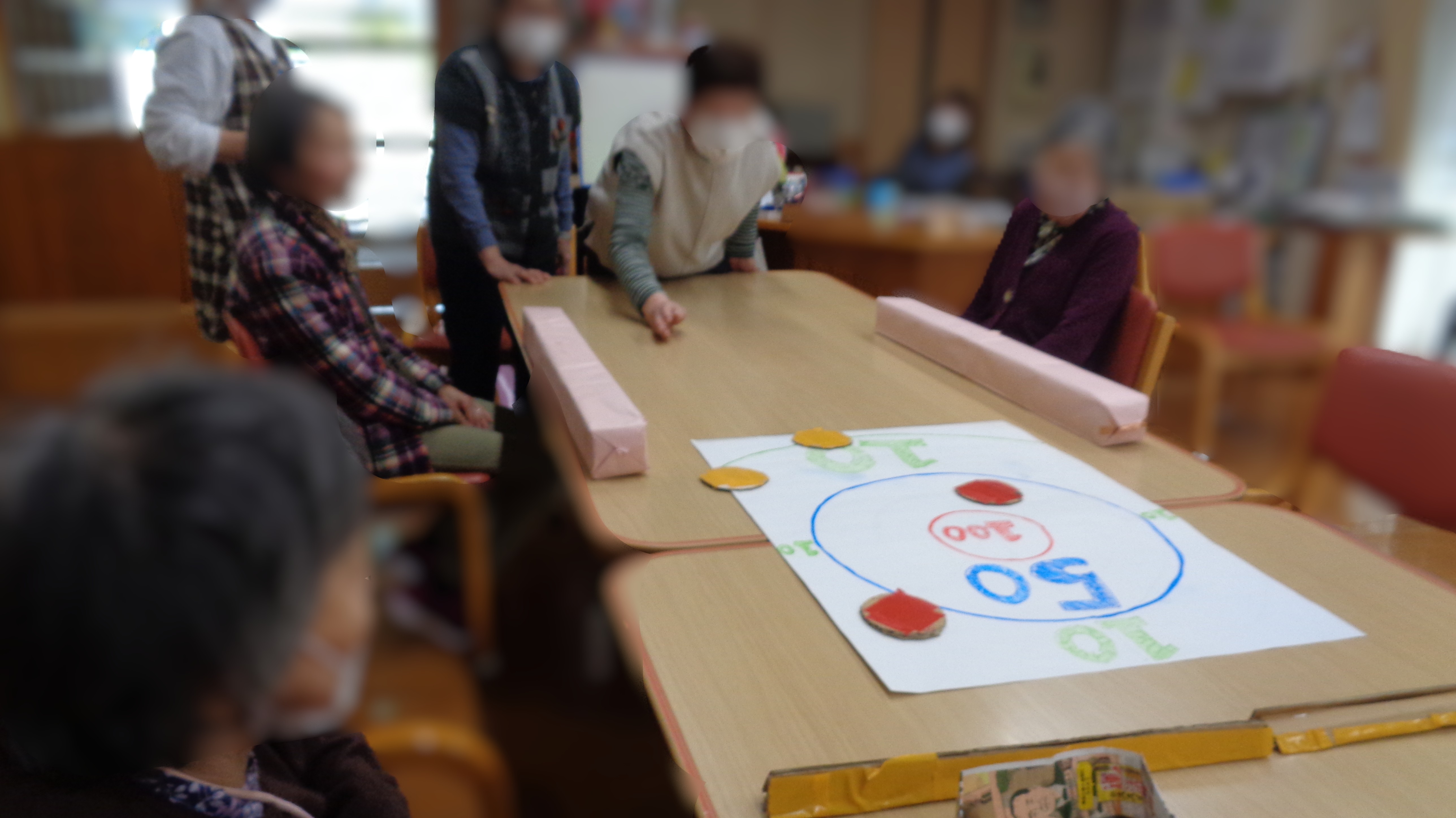 利用者さんになじみ深いおはじきに似たものなので、みなさんの理解が速くあっという間にゲームに適応できていました!