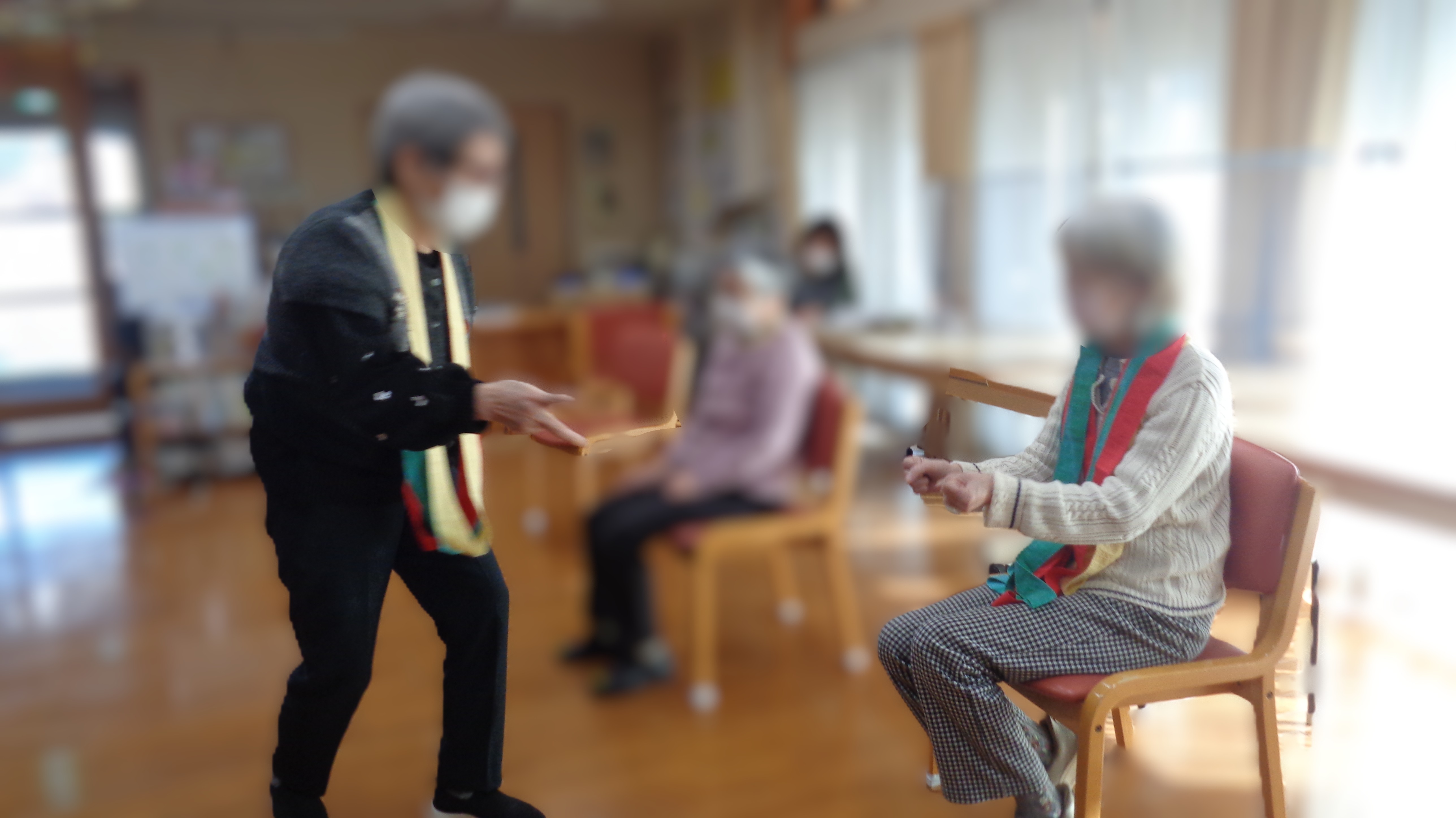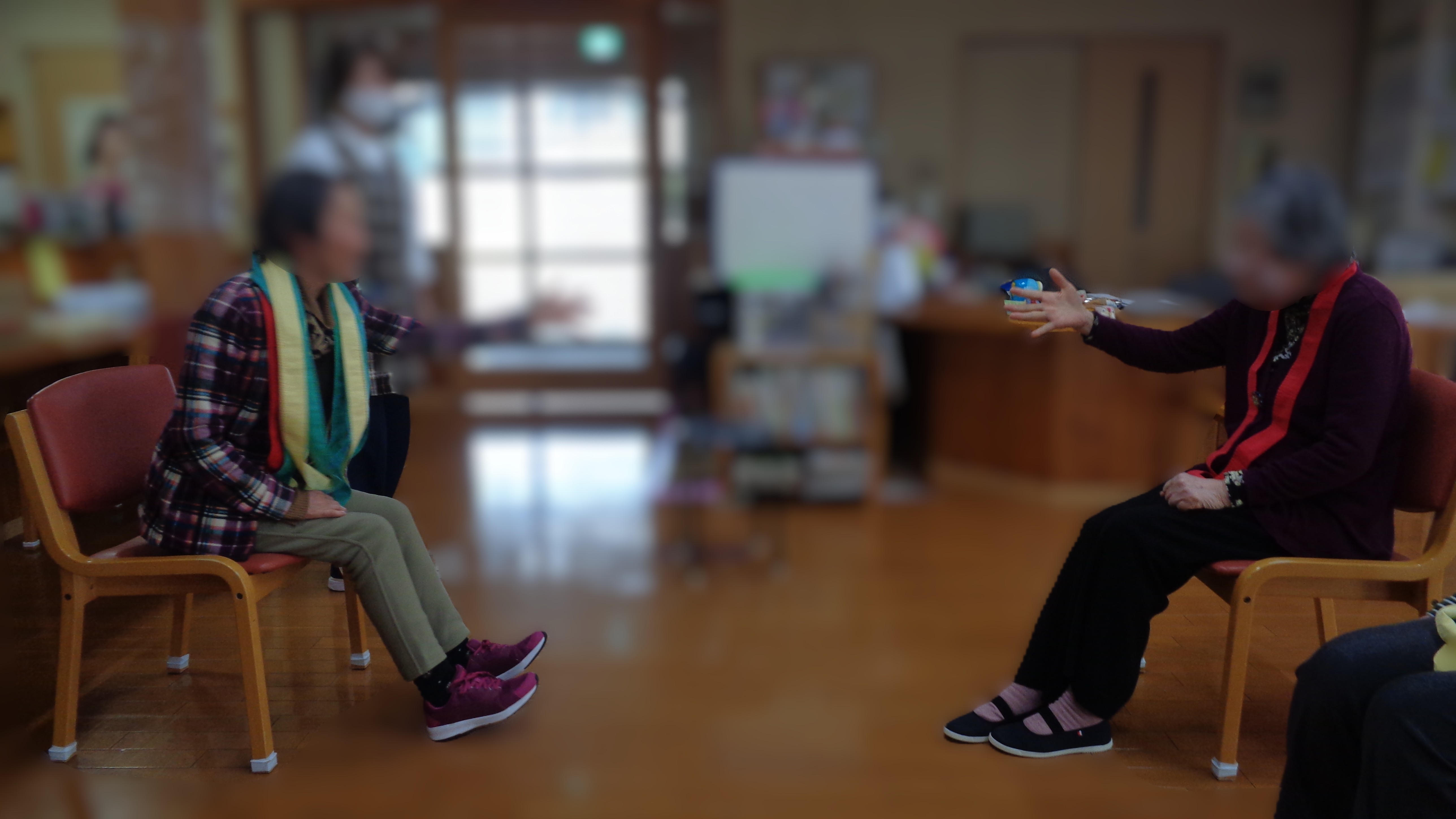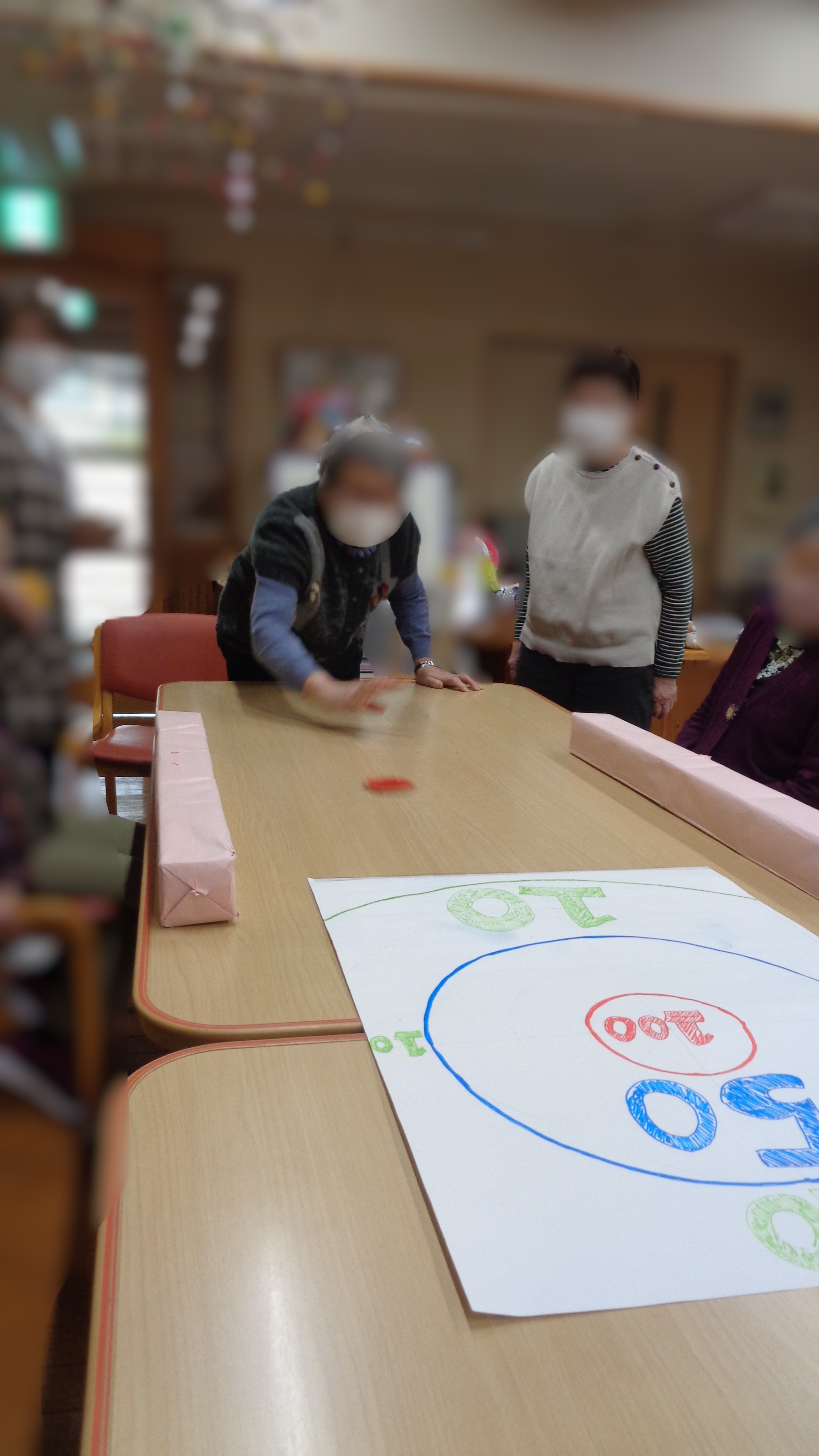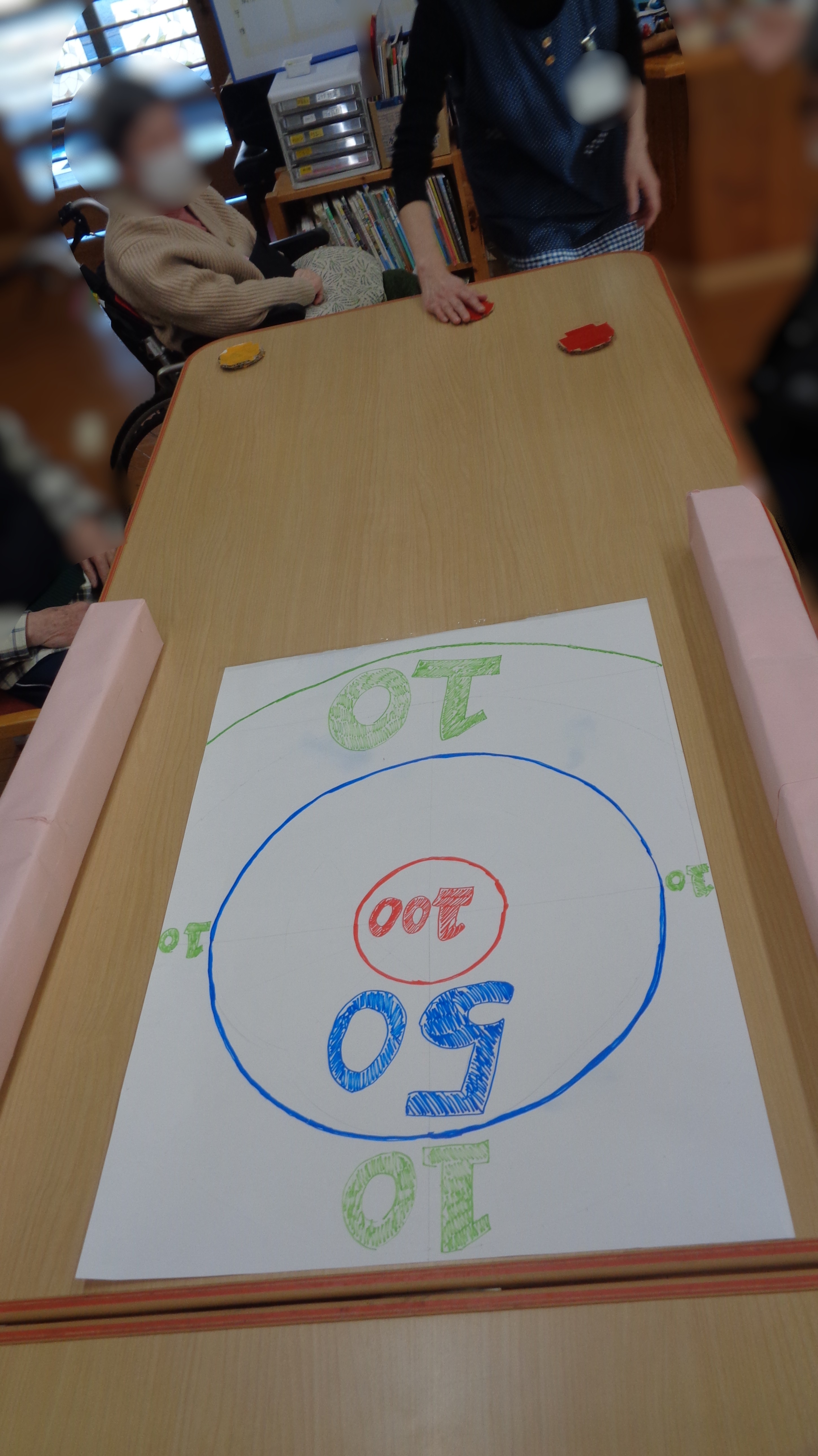 利用者さんになじみ深いおはじきに似たものなので、みなさんの理解が速くあっという間にゲームに適応できていました!