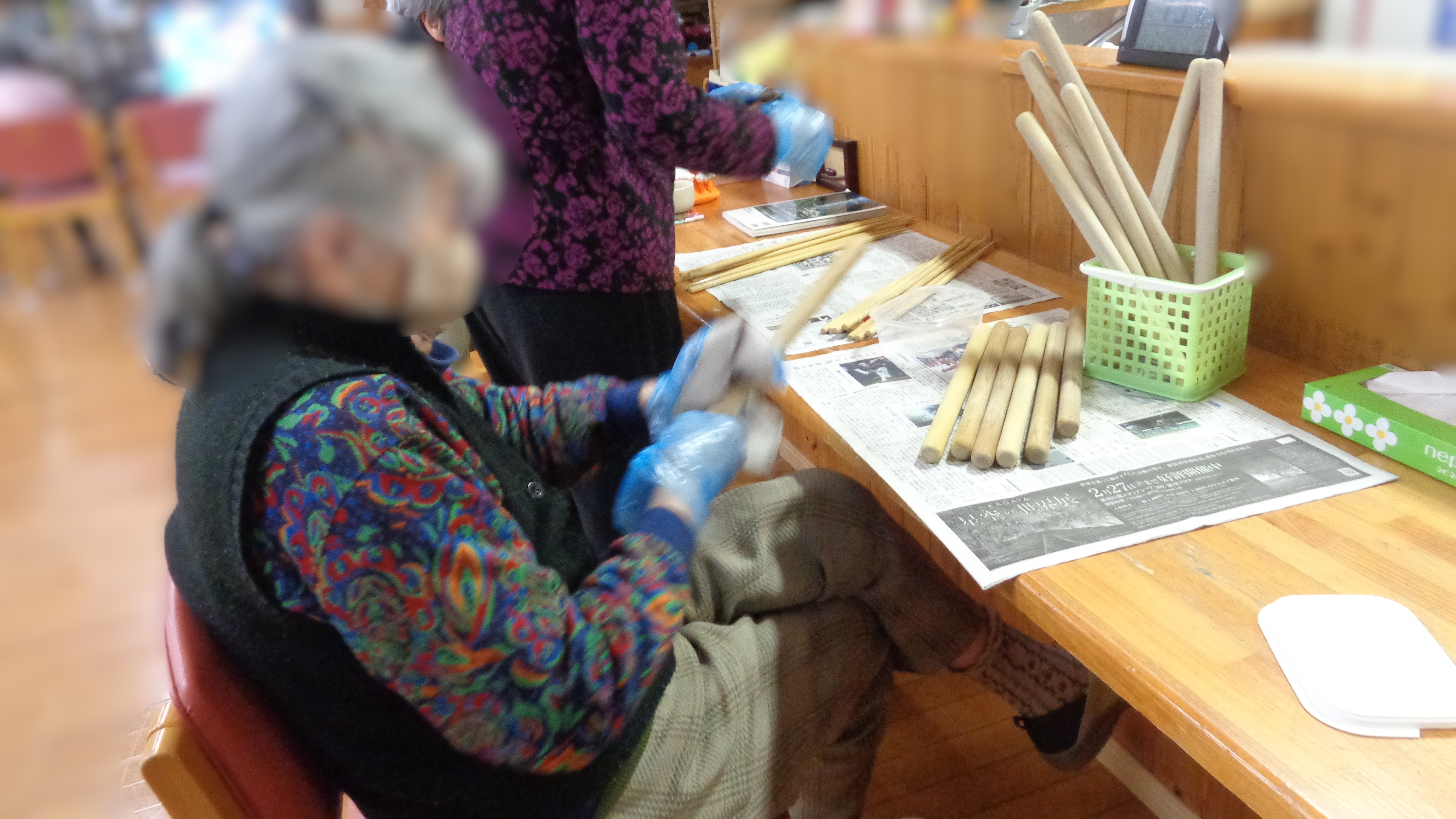 お昼の準備と「竹太鼓」のバチのお手入れを一部の利用者さんにお願いしました!!