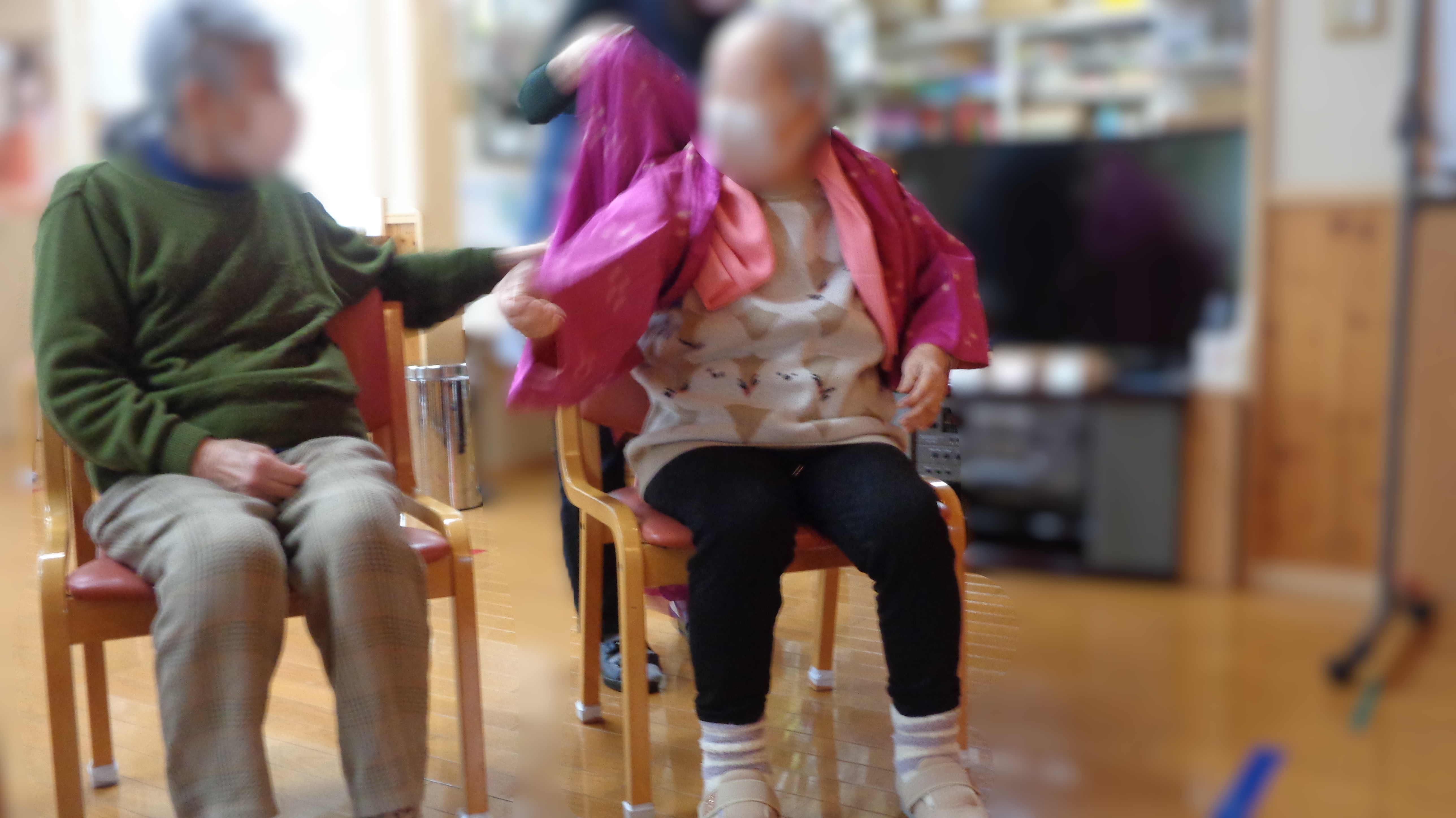 逆に利用者さんが職員さんに着付けをされたりもしました(笑)