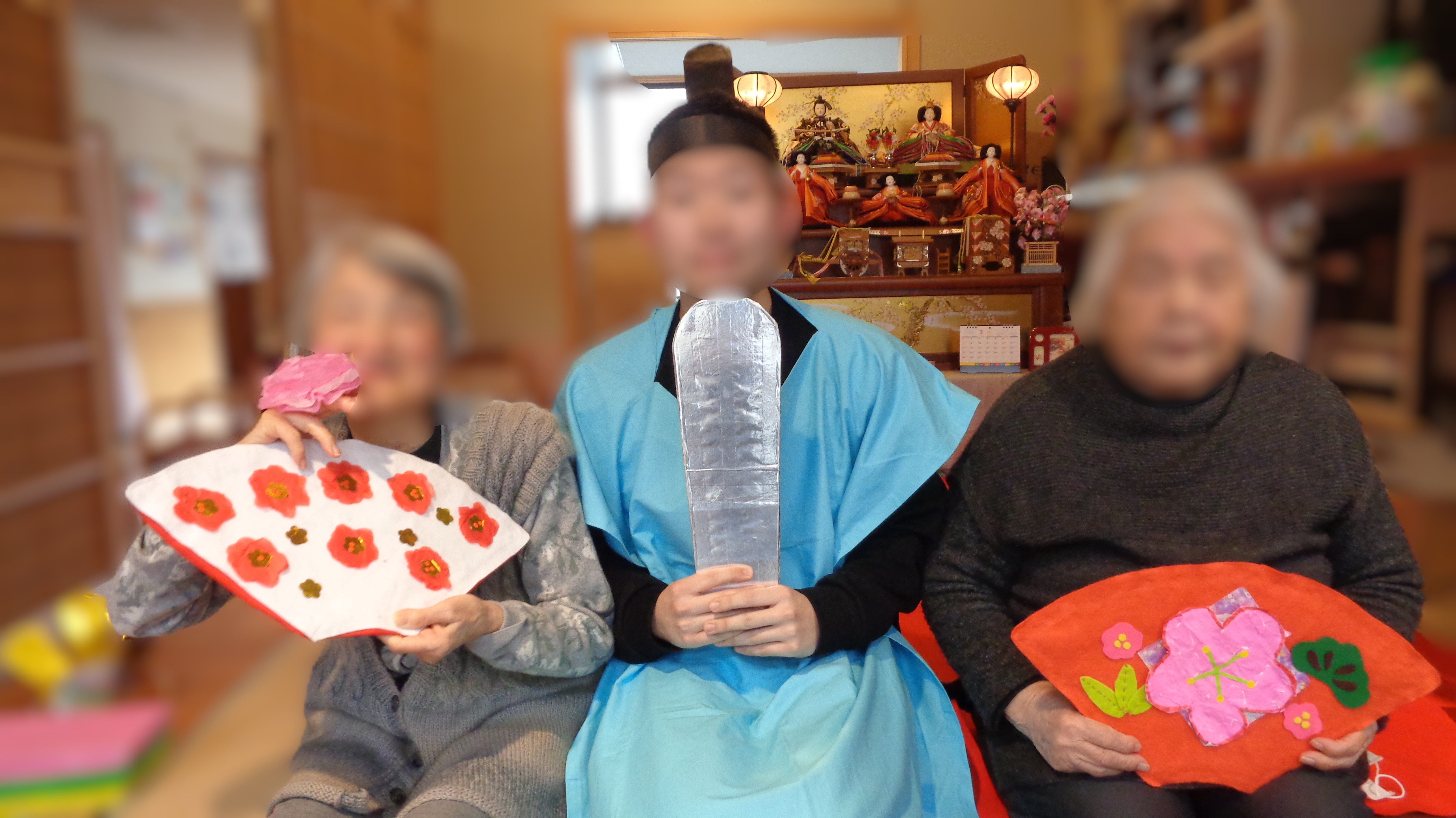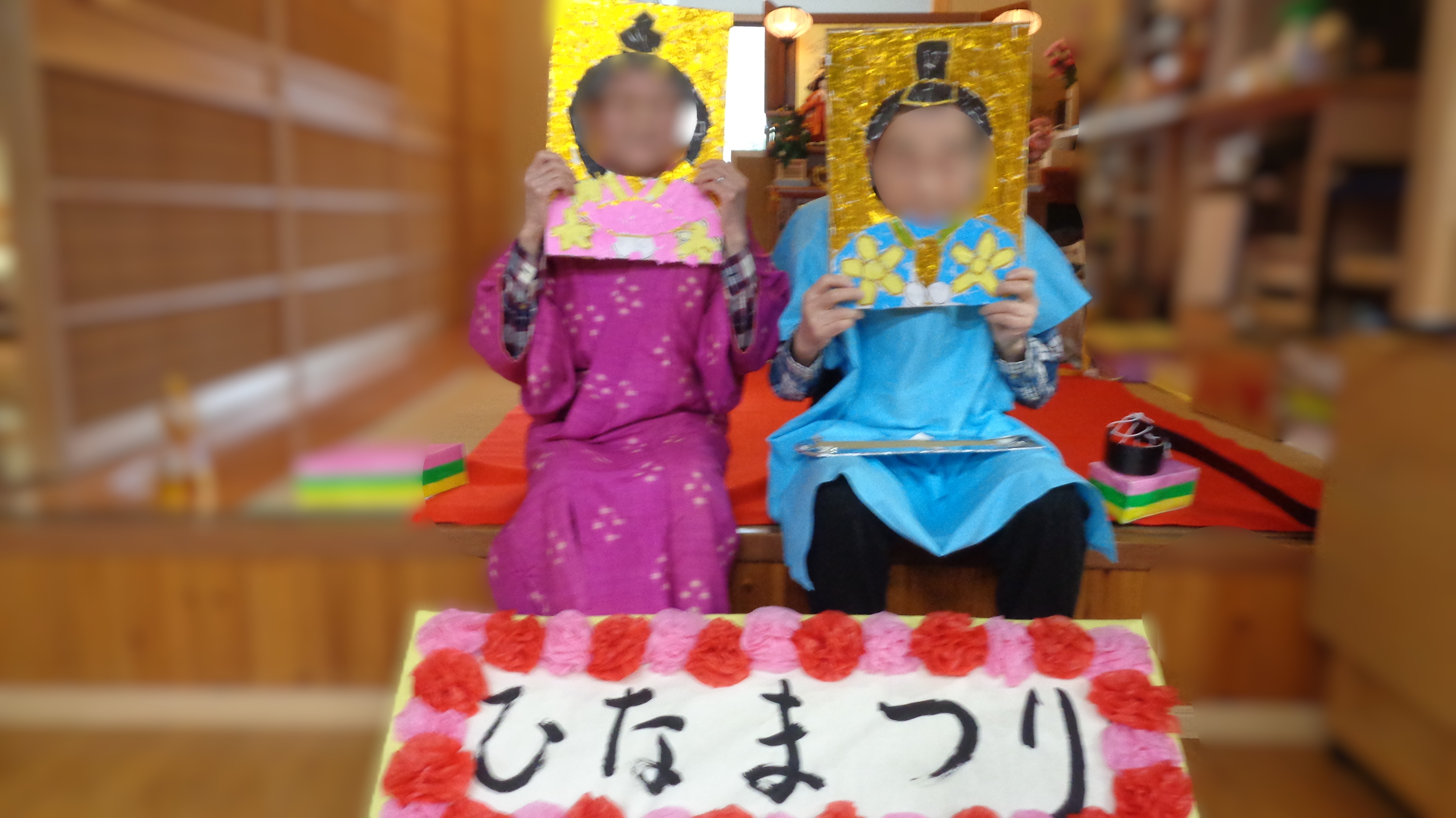 そうそう、記念写真は「お内裏様」と「お雛様」のツーショットを目的にしているので、男性の利用者さんには「お内裏様」になっていただきました!